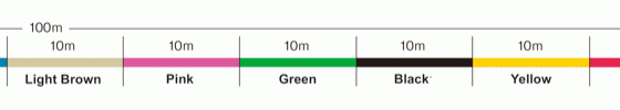 - 10 x 10 dosiertes Farbsystem (10 Farben alle 10 Meter) für exakte Schnur- und Tiefenmessung.